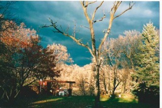 The leaves are crisp; the ground is cool to the touch and the sun is low in the horizon. A river weaves itself through the city. On the outskirts of the small prairie city, along the winding river is a house. The lavish backyard that looks out onto the river is so magnificent that it takes ones attention away from the sprawling white and blue trimmed two storey estate. Though it is fall the grass is green, perfectly manicured and the flowerbeds are weeded and kept. In spring there are fresh tulipsand daffodils; pinks, oranges, yellows and reds. In summer the bees dance among the tiger lilies and sun daisies. There are herbs and spices that are picked regularly for teas, seasonings and their pleasant aromas. The yard smells of rain in the springtime and of apple blossoms in the summer. In the middle of the yard is a giant oak tree, almost forty feet tall. Its trunk is thick and forks at three different places. One of the three arms has died, and the couple who own this property wonder if the tree will survive the winter.